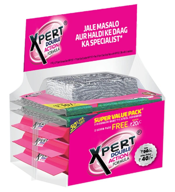 Xpert Monthly Pack 3 Dishwash Bars + 1 Steel Scrubber
